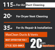 Business overviewIf your Ac is not working efficiently or you have dusty ducts, get it cleaned today at the cheapest price. The results are guaranteed with MaxClean Ducts & Vents' cleaners, and soon, your ducts will be dust-free.